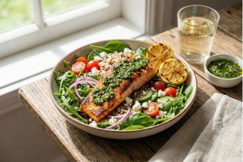 Lựa chọn 2: Salad Cá Hồi Nướng Chimichurri (Grilled & Herb Sauce)